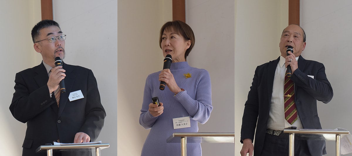 第2部では、2024年度に認定された3地域・団体の活動報告が行われました。幌尻岳「一般社団法人 平取町山岳会」(北海道)、北岳「北岳、山岳医療ボランティア」(山梨県)、上山高原「特定非営利活動法人 上山高原エコミュージアム」(兵庫県)の各団体の代表者が登壇し、助成金をどのように活用したかも含めて活動報告をし、新たな課題や取り組みなどを発表しました。