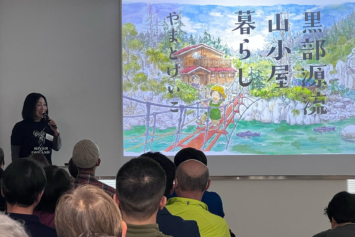 第3部は『黒部源流 山小屋料理人』などの著者で薬師沢小屋支配人でもある、やまとけいこさんを講師に招き、特別講演を行いました。「黒部源流山小屋暮らし」というテーマで、写真や映像を用いて山小屋で働くことのおもしろさや抱えている課題などをお話していただきました。サミット終了後には著書の販売及びサイン会も実施しました。